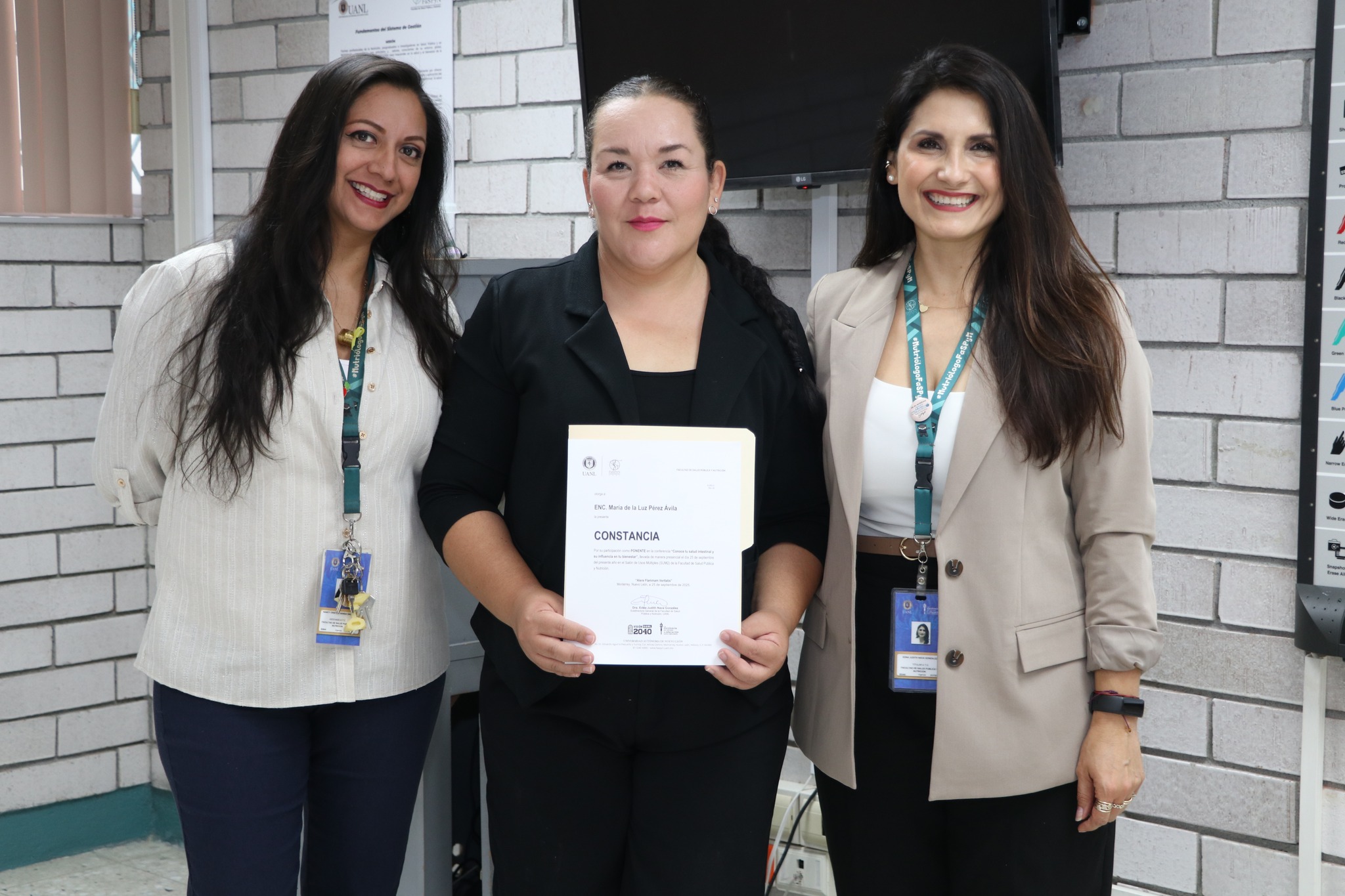 La conferencia que contó con la participación de estudiantes, profesores y personal administrativo, forma parte de las actividades del Programa de Salud del Estudiante a cargo de la Dra. Nancy Cristina Banda Sauceda, quien junto con la Dra. Edna Judith Nava González, Subdirectora General de nuestra Facultad, hicieron entrega de la constancia por su participación a la ENC. Pérez Ávila.