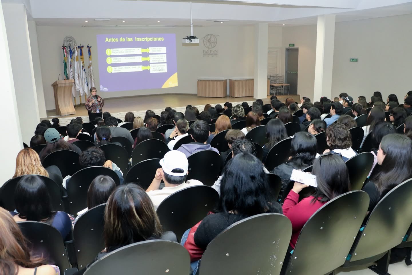 Durante la semana, los nuevos estudiantes de la FaSPyN asistieron a diversas pláticas relacionadas con reglamentos, trámites, estructura organizacional de nuestra Facultad, entre otros, además de recibir temas introductorios en aulas y ser valorados física y nutricionalmente.