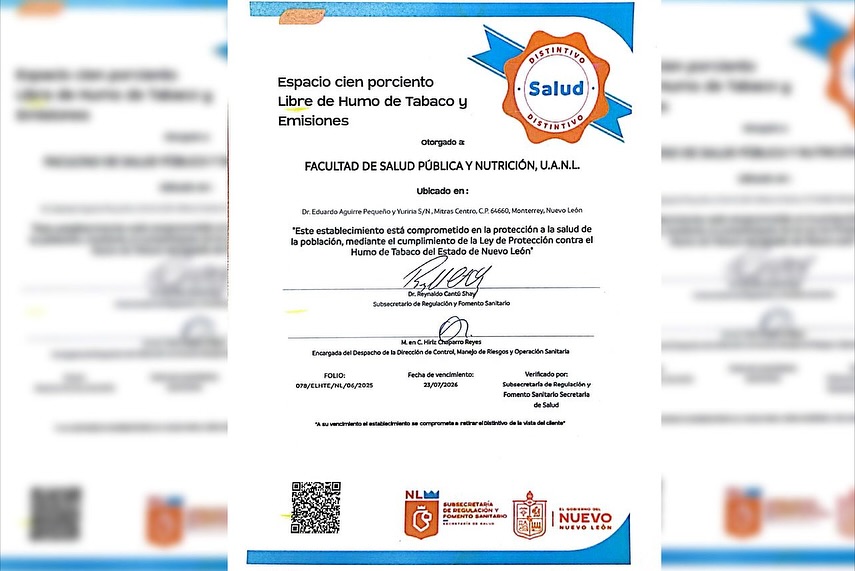 El Distintivo Salud es una iniciativa de la Subsecretaría de Regulación y Fomento Sanitario de la Secretaría de Salud de Nuevo León, cuyo propósito es reconocer a los establecimientos que promueven ambientes saludables en el estado. Dentro de esta iniciativa, la categoría “Espacios Libres de Humo de Tabaco” distingue a aquellas instituciones que no cuentan con áreas destinadas al consumo de tabaco dentro de sus instalaciones.